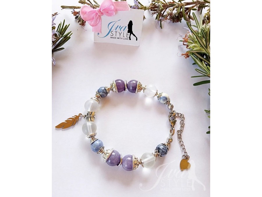 Izrađena je od sodalita, angelita i gorskog kristala. Ukrašena je elementima od nerdajuceg čelika i tibetanskog srebra. Na sredini narukvice i na kraju nalaze se privesci koji su takode od nerdajuceg čelika.
